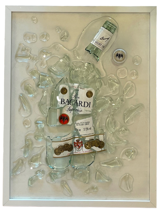 „Shattered Bat“ verbindet Eleganz mit Symbolik. Inspiriert von der ikonischen Fledermaus der Bacardi-Flasche, ist das Werk in schwarzem und weissem Hintergrund erhältlich